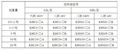 各種型號(hào)的電動(dòng)葫蘆用的控制型號(hào)見(jiàn)表2。電氣原理見(jiàn)單頁(yè)圖紙。