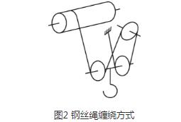 這種方式因結(jié)構(gòu)形式加大,使得對適用場合提出更高要求,不能很好地適應(yīng)空間小、吊鉤覆蓋范圍要求廣的場合。同時(shí)由于實(shí)際應(yīng)用過程中鋼絲繩內(nèi)應(yīng)力的釋放,在使用一段時(shí)間后,會出現(xiàn)鋼絲繩出繩和入繩不能同步,導(dǎo)致亂繩現(xiàn)象。