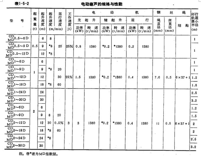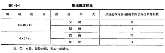 鋼繩的報(bào)廢標(biāo)標(biāo)準(zhǔn)見表1-5-1.電動葫蘆的規(guī)格性能見表1-5-2