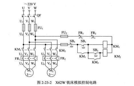 (2)X62W銑床模擬控制電路如圖2-23-2所示,請(qǐng)讀者自行分析其工作原理。