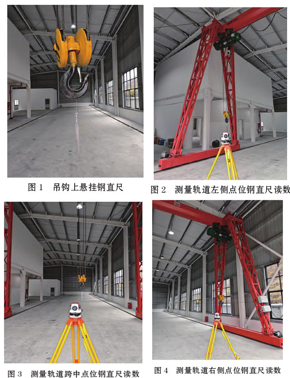 (3)將電動(dòng)葫蘆運(yùn)行至軌道右側(cè)(圖4),待鋼直尺靜止后,調(diào)整水準(zhǔn)儀目鏡,讀出目鏡中鋼直尺的刻度S3。