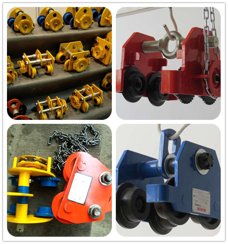 手動單軌小車可懸掛在各式小型吊車或安裝在固定的工字鋼上,配以手拉葫蘆組成完整的起重機(jī)械。對于工作效率要求不高的倉庫,車間和電站,可作為安裝,檢修設(shè)備或吊運(yùn)重物之用。