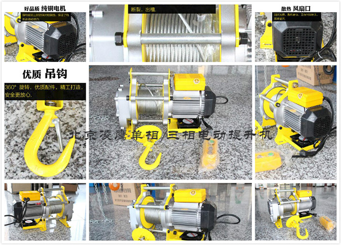 單項多功能電動提升機(jī)較普通的電動提升機(jī)最大的區(qū)別在于是可以在單相電的情況話進(jìn)行操作的。本產(chǎn)品嚴(yán)格按國家3包執(zhí)行,產(chǎn)品質(zhì)量由中國人民保險公司(PICC)承保,請放心使用。